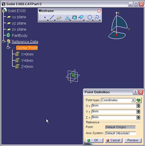 4. Point -> Coordinates -> (0,0,0) ÀÔ·ÂÇÑ´Ù.