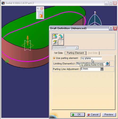 1. Advanced Draft ÀÛ¾÷Çϱâ (¾ç¸é Draft ÀÛ¾÷) Parting Element TabÀ¸·Î À̵¿ÇÑ´Ù. Use Parting element : XY Plane