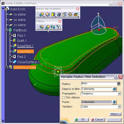 1. »óºÎ Edge¿¡ Variable Radius Fillet ÀÛ¾÷Çϱâ